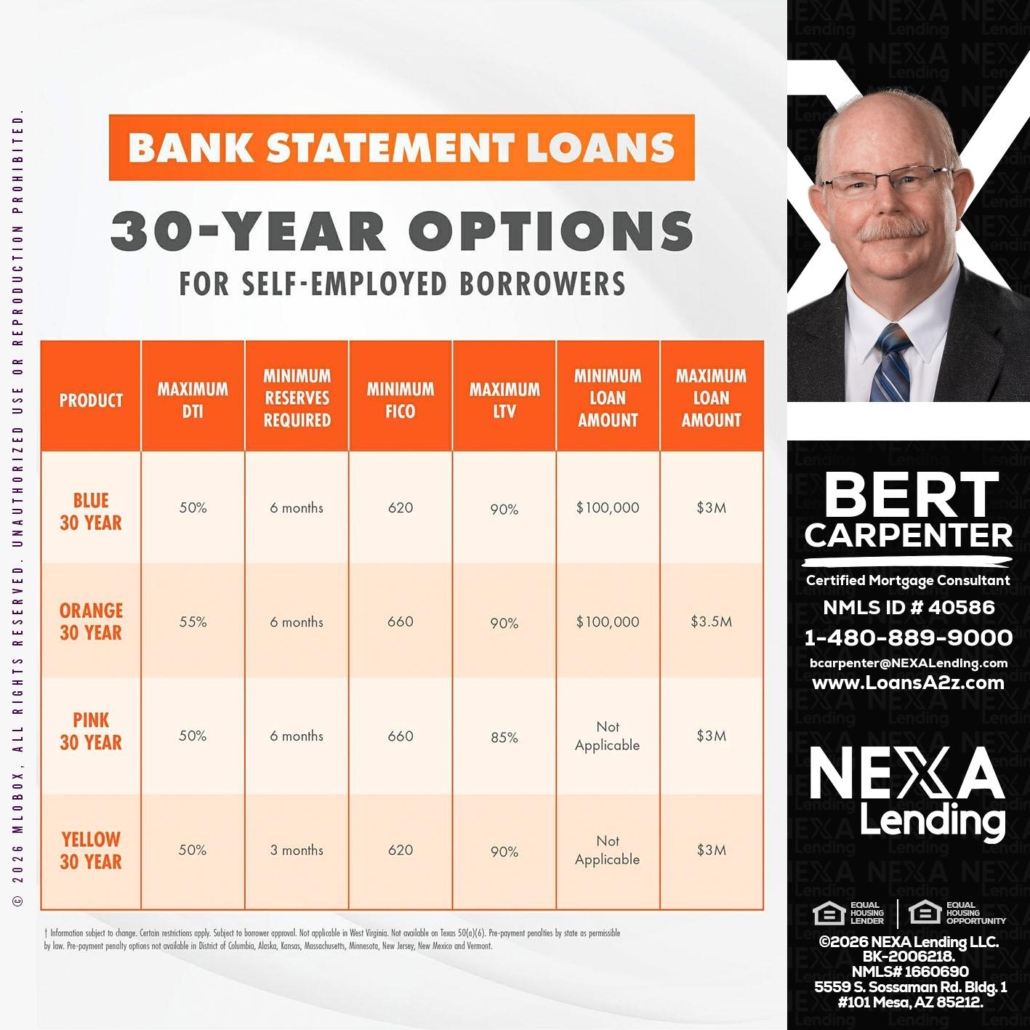 Hi, my name is Bert Carpenter. I’m a Loan Officer with NEXA Lending LLC., offering personalized mortgage solutions, fast customized quotes, great rates and service with integrity.