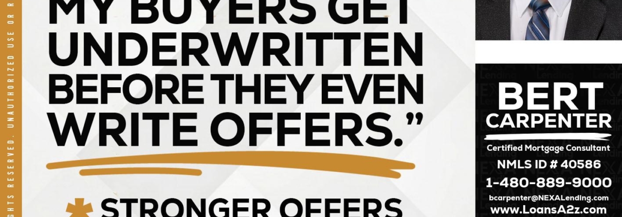 agents - Bert Carpenter -Certified Mortgage ConsultantHi, my name is Bert Carpenter. I’m a Loan Officer with NEXA Lending LLC., offering personalized mortgage solutions, fast customized quotes, great rates and service with integrity.