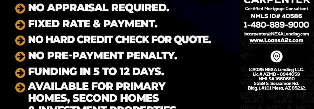 Hi, my name is Bert Carpenter. I’m a Loan Officer with NEXA Lending LLC., offering personalized mortgage solutions, fast customized quotes, great rates and service with integrity.