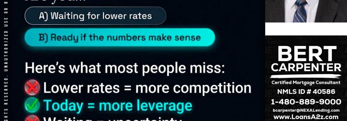 Hi, my name is Bert Carpenter. I’m a Loan Officer with NEXA Lending LLC., offering personalized mortgage solutions, fast customized quotes, great rates and service with integrity.