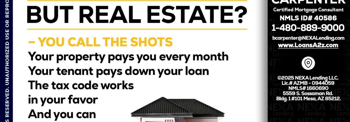 Hi, my name is Bert Carpenter. I’m a Loan Officer with NEXA Mortgage LLC., offering personalized mortgage solutions, fast customized quotes, great rates and service with integrity.