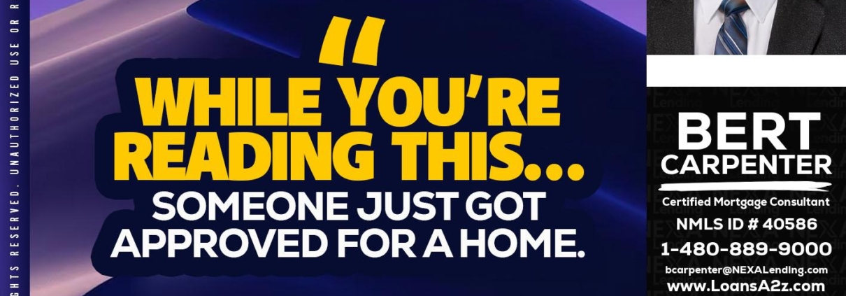 Hi, my name is Bert Carpenter. I’m a Loan Officer with NEXA Lending LLC., offering personalized mortgage solutions, fast customized quotes, great rates and service with integrity.