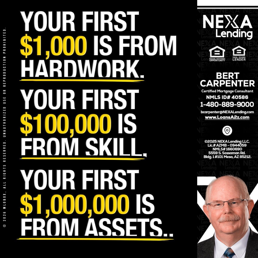 Hi, my name is Bert Carpenter. I’m a Loan Officer with NEXA Lending LLC., offering personalized mortgage solutions, fast customized quotes, great rates and service with integrity.